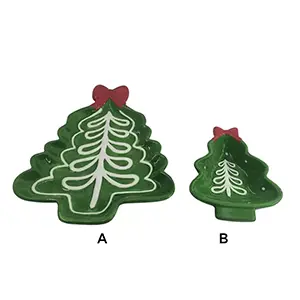 Eskuz margotutako Oporretako Opariak Gabonetako Zuhaitz Platerak bi bertsio ditu: A bertsioa (handia) plater nagusiak eta postreak zerbitzatzeko egokia da, eta B bertsioa (txikia) plater txikiak ederki apaintzeko ezin hobea da, mahai-behar askori erantzuteko. Goialdea urrezko izar edo lazo gorri batekin apainduta dago, eskuz margotutako ereduekin konbinatuta, jai espiritua xehetasun guztietan erakutsiz. Mahai-ontzi dotore eta praktiko hau zure Gabonetako mahairako aukerarik onena da zalantzarik gabe!