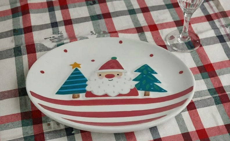 Oporretako dekorazioa:Oporraldi epeletan, Gabonetako Zeramikazko Plater Opari hau kandela usaintsuekin konbina dezakezu. Kandelaren argiak distira egiten duen eta Santa Claus erliebea argitzen duen bitartean, badirudi plaka osoa bizia hartzen ari dela, "gabon gaueko maitagarrien" giro ameslaria sortuz, zure etxea berotasunez eta amodioz betez. Bestela, jarri apaintzeko plaka Gabonetako zuhaitzaren azpian; zure mahaiko ikusmen-foku bihurtuko da, guztion arreta erakarri eta xarma berezia gehituz zure oporretako apaingarriei.