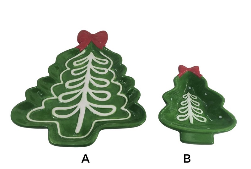 Eskuz margotutako oporretako opariak bi Gabonetako zuhaitz-platerak eskuz egindako zeramika bikainez eginak dira. Pieza bakoitza artisauek eskuz moldatzen eta beiratzen dute, beira leunaren azpian ehundura berezia eta beroa sentitzeko aukera emanez. Kalitate handiko eskulan honek produktuaren edertasuna eta berezitasuna bermatzeaz gain, iraunkorra eta garbitzeko erraza ere egiten du.